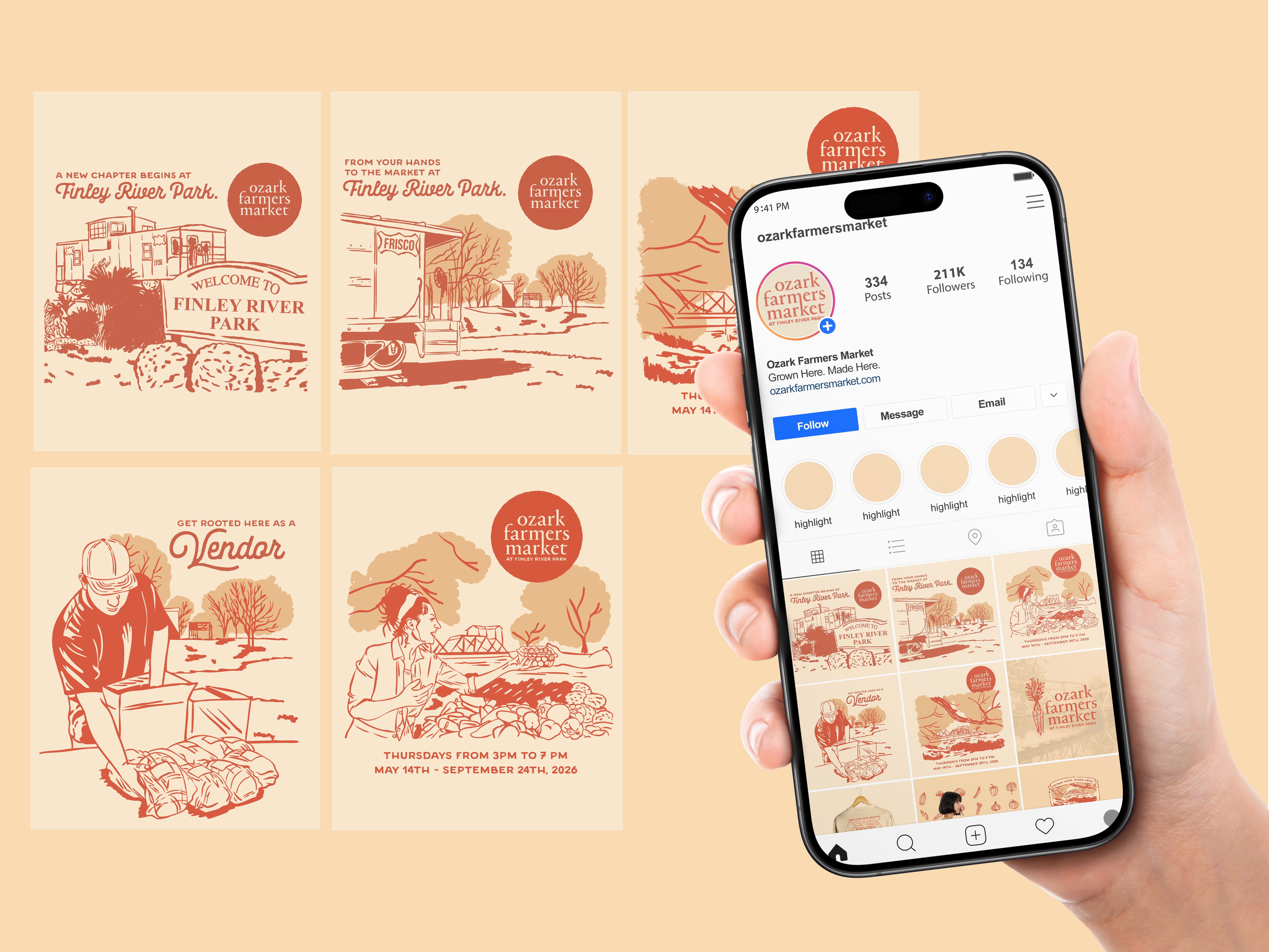 The Ozark Farmers Market was moving from Finley Farms to Finley River Park—more than a change of place, it was a chance to reset. They had a logo, but no system behind it. We turned that into a full identity built to show up everywhere—from signage and social to merch and vendor touchpoints—giving the market a clear, consistent presence for its next chapter.