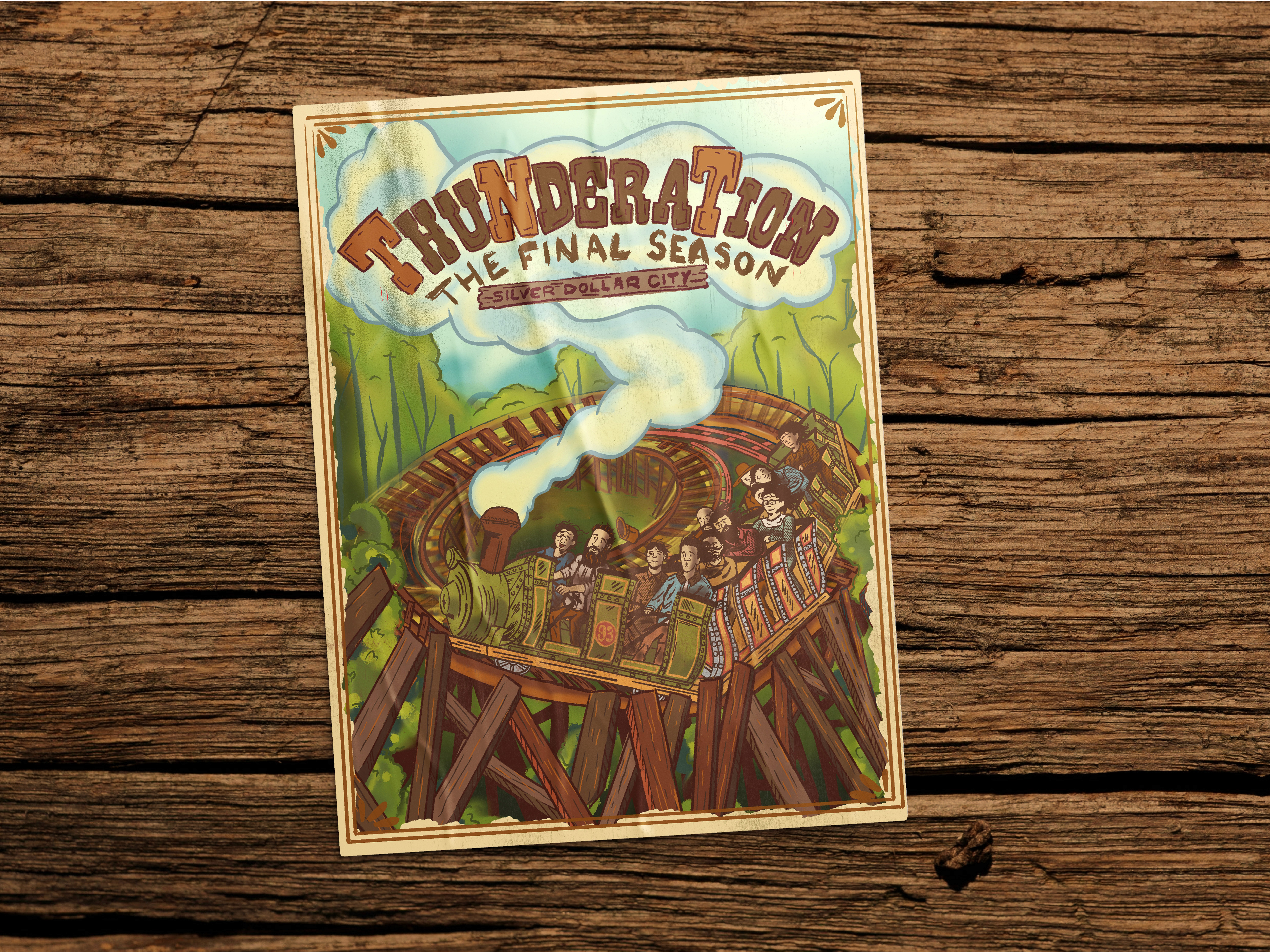 Camp Ape was brought in to help send it out the right way. We crafted a commemorative poster and a run of collectible stickers—built to feel like something you’d find tucked in an old park map or pinned up in a cabin after a long summer day. A year-long farewell campaign celebrating every climb, drop, and memory made along the rails.