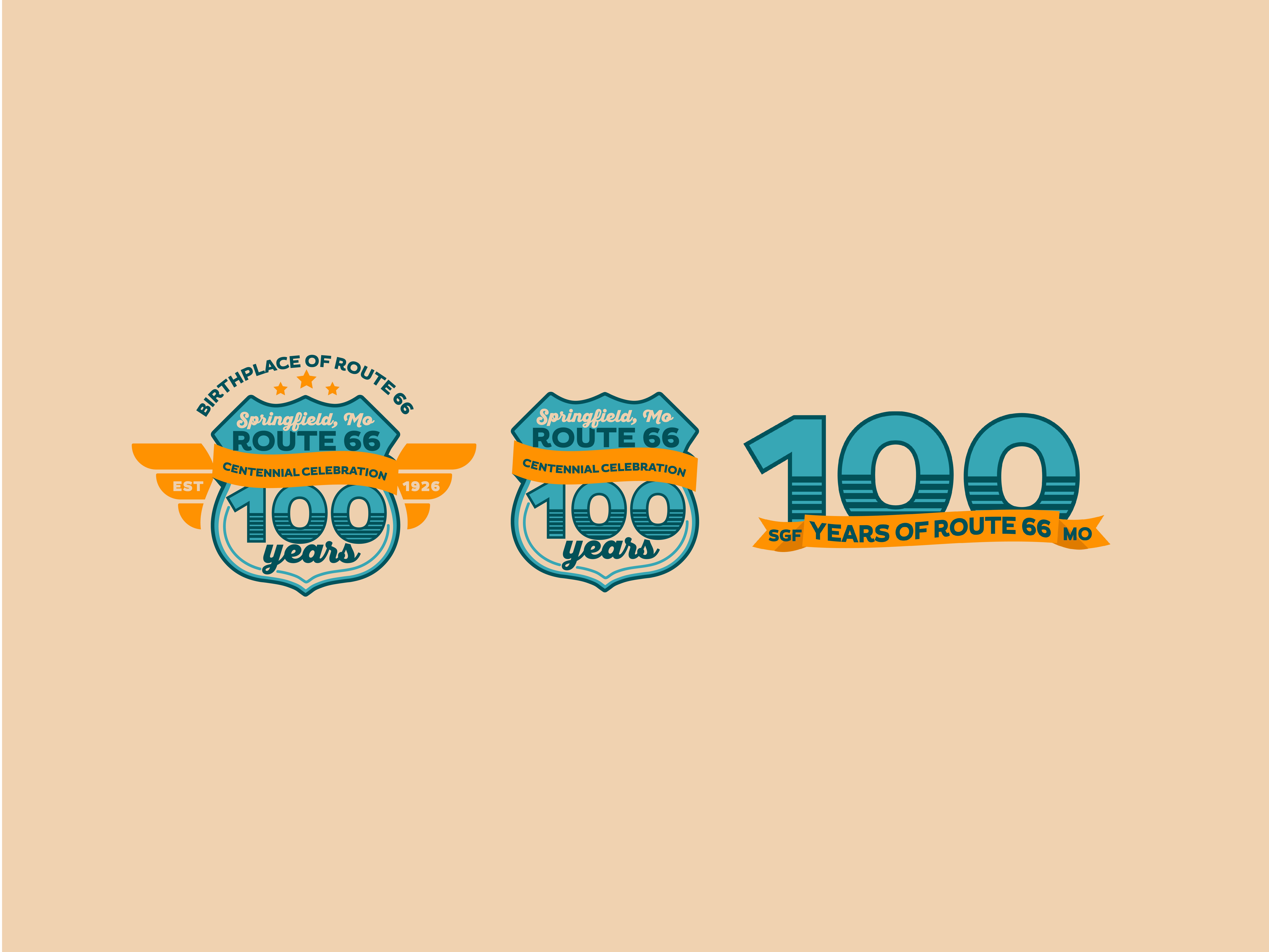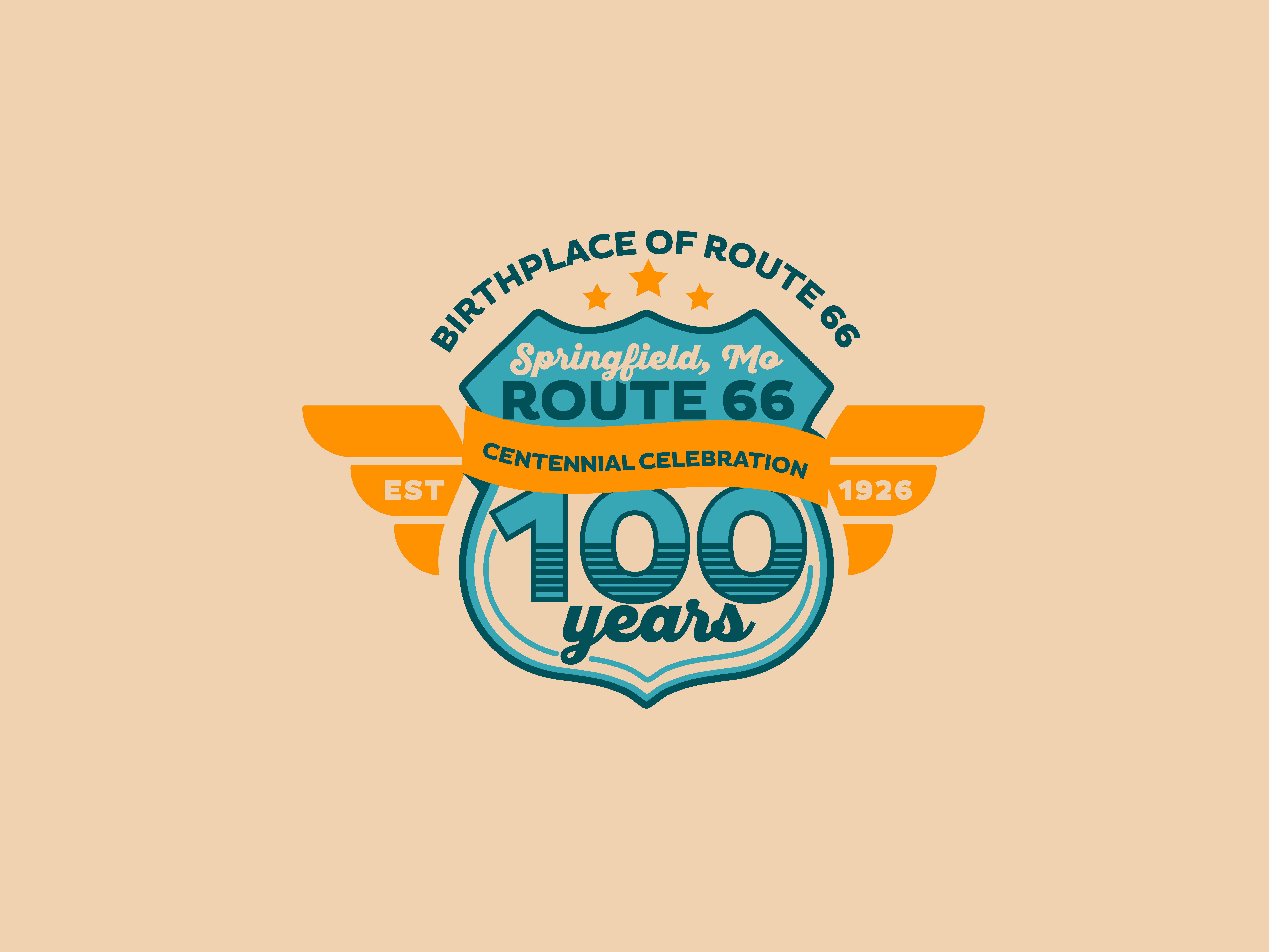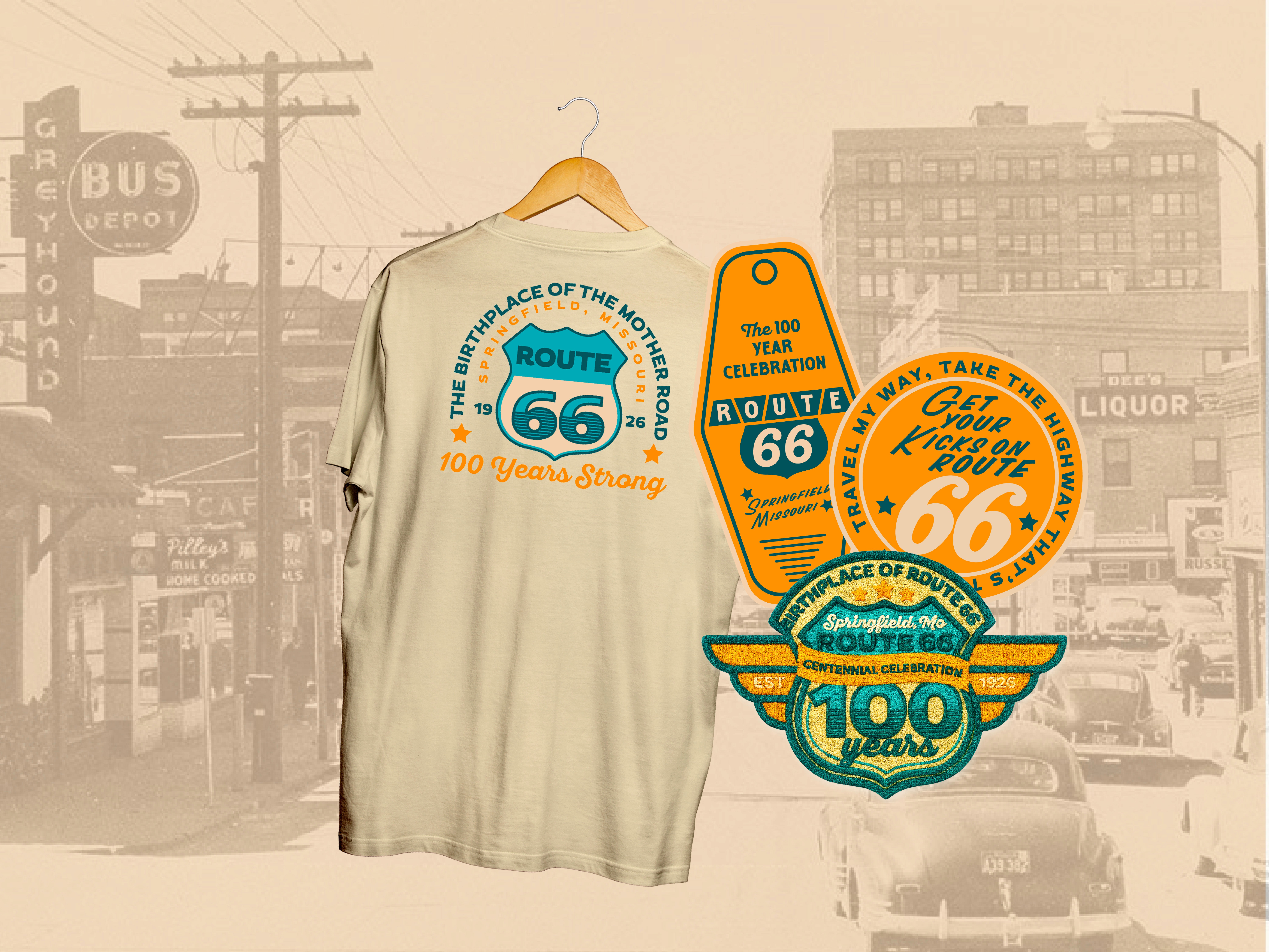 Route 66 is hitting the big 1-0-0. A century of neon signs, gas station coffee, and the kind of Americana that makes you wanna roll the windows down and let the bugs hit your teeth. Our job? Give the Mother Road a birthday suit that felt fresh without ditching the grit. With a primary and secondary logo already in play, we weren’t starting from scratch—we were asked to steer the branding toward something celebratory, flexible, and rooted in nostalgia while still looking good on a hoodie or a billboard.