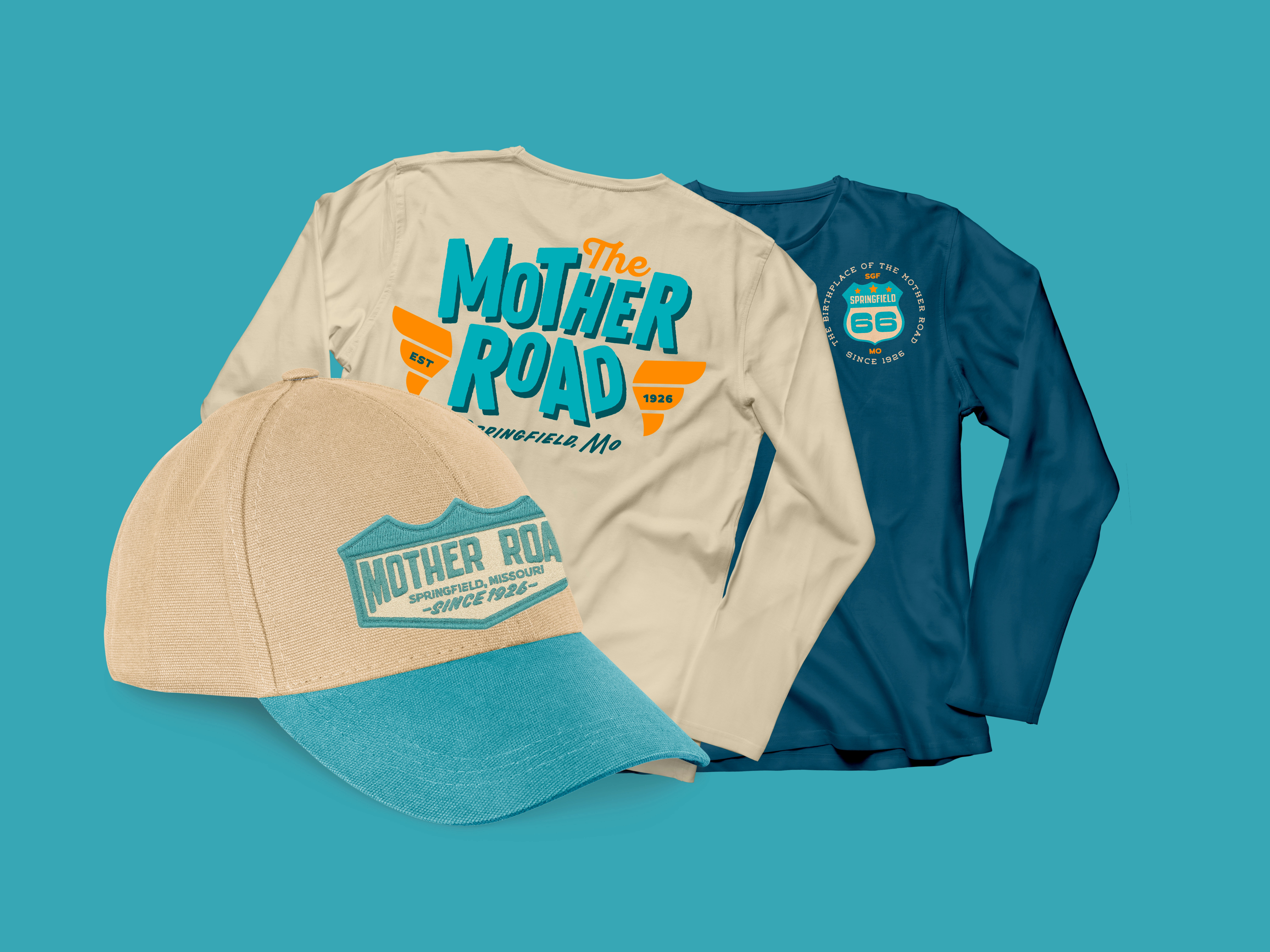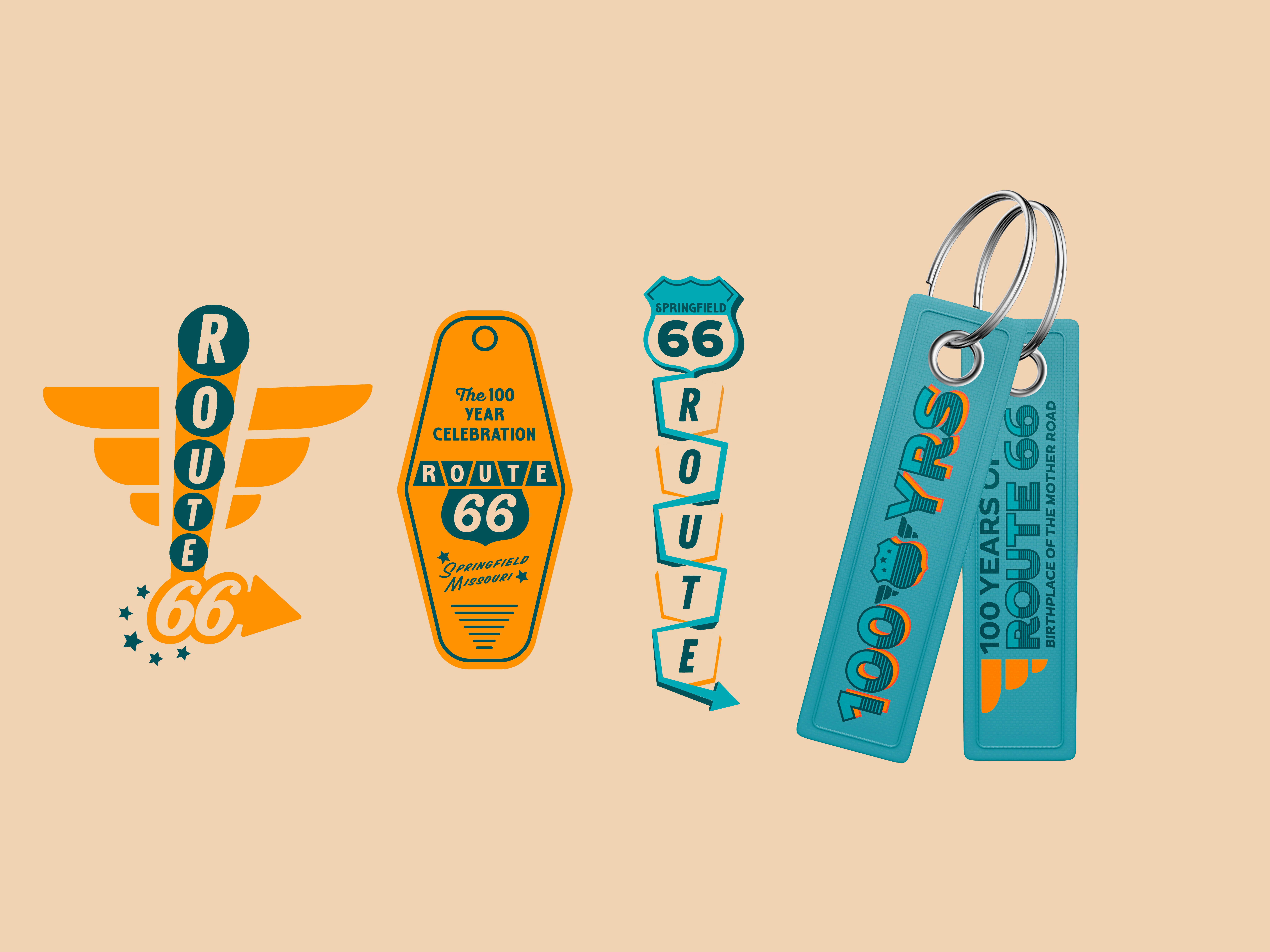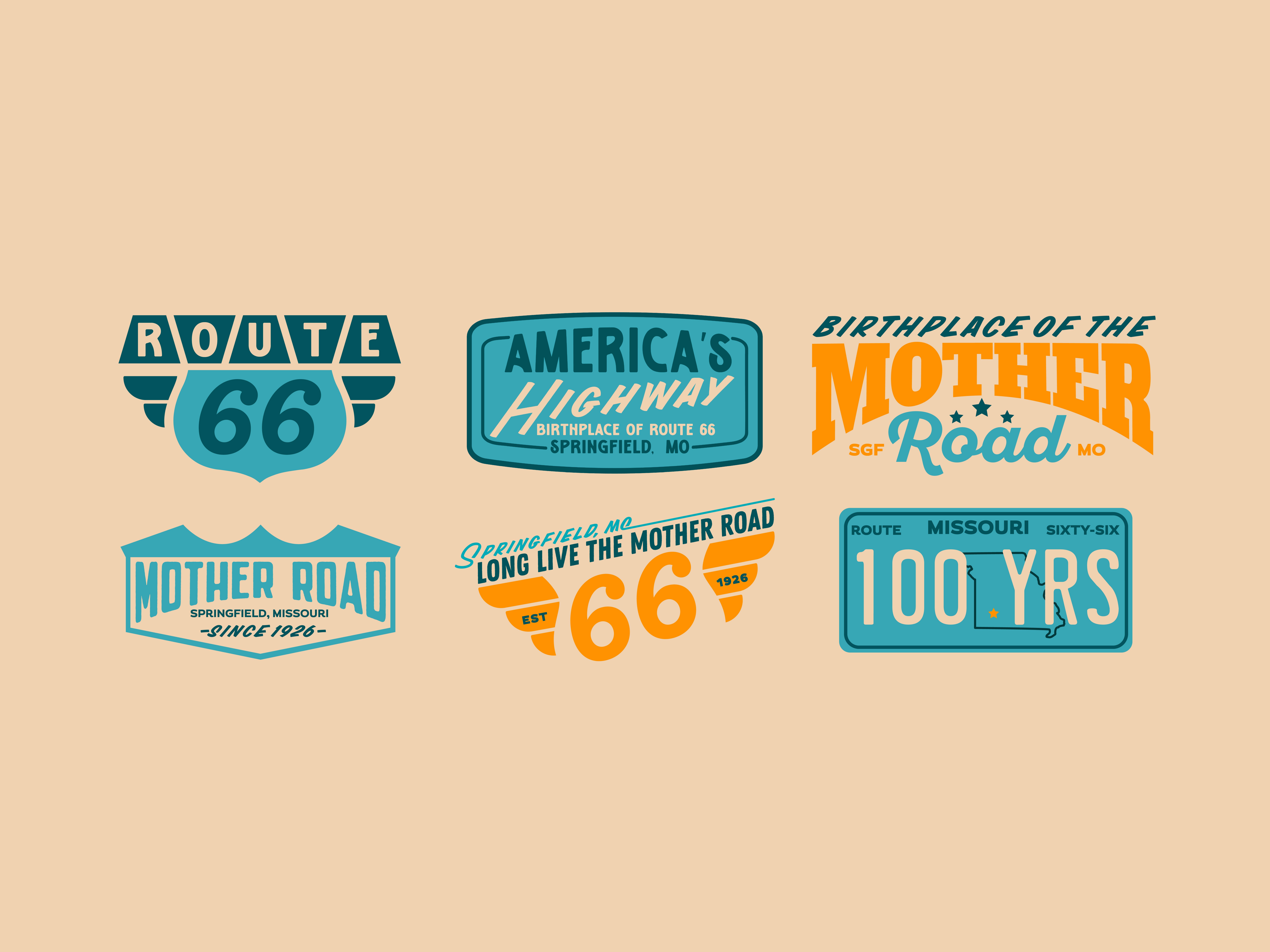 Route 66 is hitting the big 1-0-0. A century of neon signs, gas station coffee, and the kind of Americana that makes you wanna roll the windows down and let the bugs hit your teeth. Our job? Give the Mother Road a birthday suit that felt fresh without ditching the grit. With a primary and secondary logo already in play, we weren’t starting from scratch—we were asked to steer the branding toward something celebratory, flexible, and rooted in nostalgia while still looking good on a hoodie or a billboard.